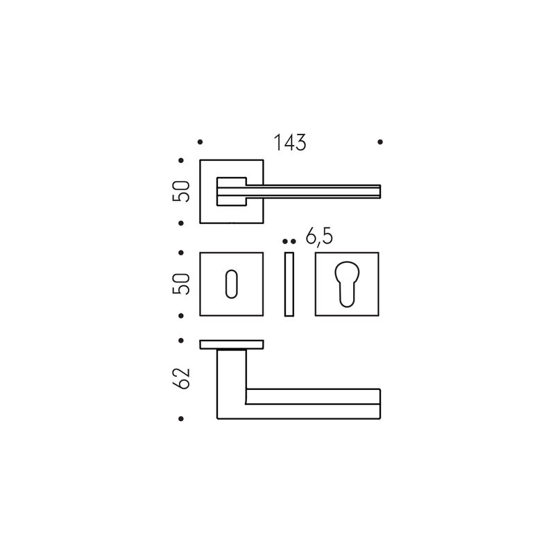 Rozetová kľučka na interiérové dvere Electra od Colombo Design je vyrobená z mosadze a je povrchovo upravená. Hranatá rozeta má priemer 50 mm a hrúbku 6,5 mm.