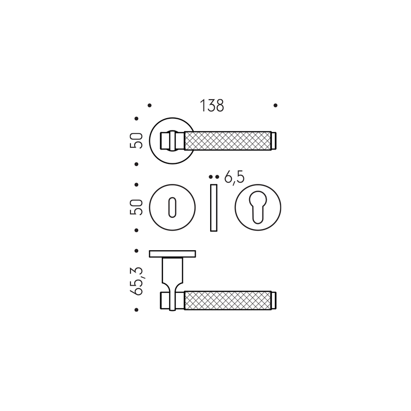 Rozetová kľučka na interiérové dvere Gryps od Colombo Design je vyrobená z mosadze a je povrchovo upravená. Okrúhla rozeta má priemer 50 mm a hrúbku 6,5 mm.