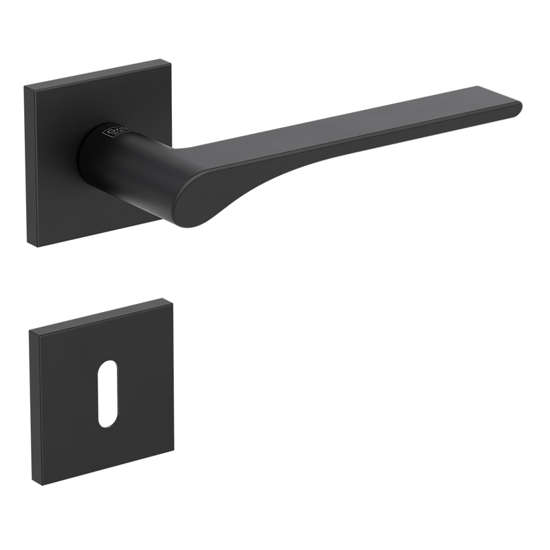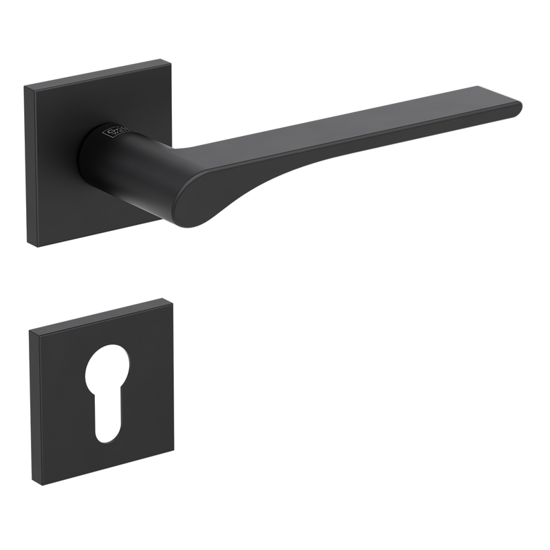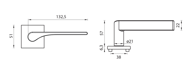 Rozetová kľučka na interiérové dvere s hranatou rozetou je vyrobená z materiálov vysokej kvality - zamak a je povrchovo upravená. Rozeta má rozmery 51 mm x 51 mm a hrúbku 6,3 mm.