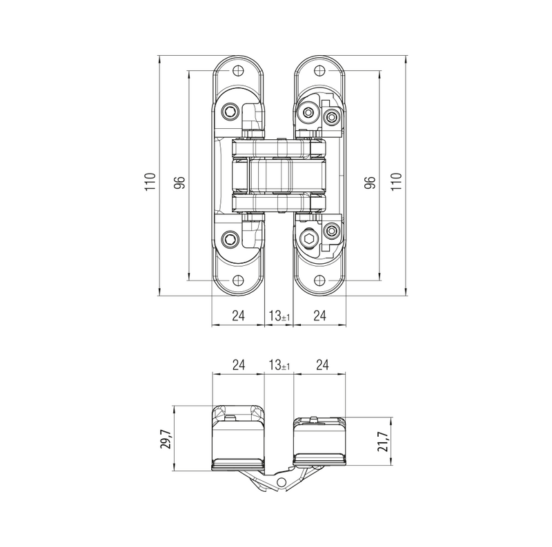 Kompletne 3D nastaviteľný záves pre bezfalcové dvere s masívnou drevenou, obložkovou, oceľovou alebo hliníkovou zárubňou.